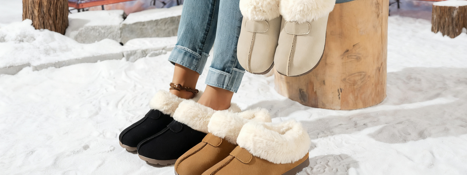 Ladies Low Heel Fur Trimmed Chic Winter Shoes